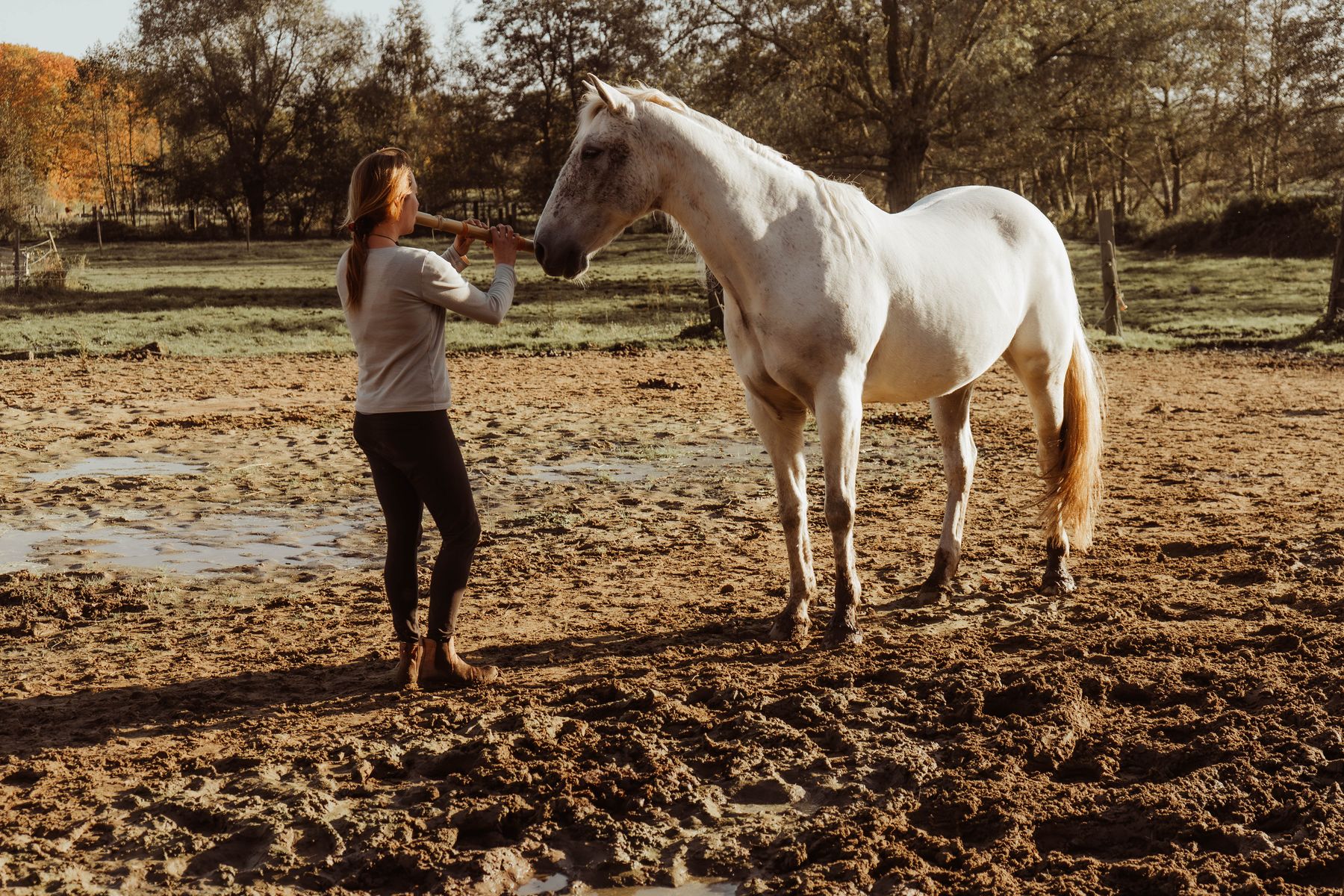 Ik bied lessen en workshops aan die gericht zijn op een betere connectie met je paard. Met een rustige en natuurlijke aanpak help ik bij uitdagingen zoals trailerladen, overstappen van bit naar bitloos en het trainen van hoogsensitieve paarden. Daarnaast geef ik advies over holistische zorg en kruiden ter ondersteuning van de gezondheid van je paard.